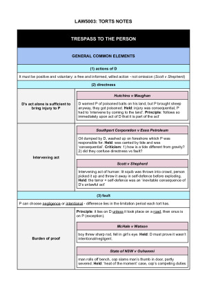 A comprehensive collection of case law and statutes relevant to torts law - in an aesthetically pleasing tabular format, color-coded and summarised. It covers all examinable topics, including: - Trespass to the person - Protection of land - Negligence - Vicarious Liability