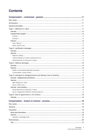 I decided to develop a complete course guide for students in Remedies, based on the order you would use for an answer to an exam hypothetical. You won’t even need to spend $200 on textbooks! Sectioned by topic groups, and then individual topics. Relevant legislation in every topic so no need to cross-reference multiple documents. Exam hypotheticals model skeletons at the end. Contractual Compensation - General principles - Five different types of compensation - Elements - Debts & penalties Tortious compensation - General principles - Land, goods and persons torts - Elements Misleading and deceptive conduct - General principles - Elements Equitable compensation - General principles - Elements for different equitable causes of action (trust funds, fiduciary duty and duty of care) Specific performance, injunctions & Lord Cairns’ Act damages - Principles - Elements Restitution, disgorgement and rescission - General principles - Elements Hypothetical structure