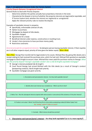 Topics Covered: - Topic 3: Mortgages - Topic 4: Systems of Title & Torrens System - Topic 5: Indefeasibility of Title - Topic 6: Exceptions to Indefeasibility - Topic 7: Unregistered Interests