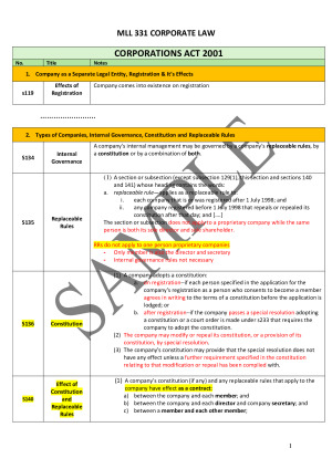*** T1 2024*** Includes a section outlining all the relevant provisions and legislation while linking to core legal principles and key cases associated with each. Gives you a comprehensive snapshot for quick recall and fuss free referencing during exams. Provides clear explanations of complex legal principles, a full breakdown of landmark cases, and detailed application of key legislation ~ to help you ACE the exam with ease! There's ALOT of content to cover for this unit. To help with that, each topic begins with a cheat sheet of the main areas of law that you need to know. Also, I've created the ultimate cheat sheet for Directors Duties, Breach of Civil Penalty Provisions and their Remedies. Topics covered: 1. Company as a Separate Legal Entity, Registration & Itβs Effects 2. Types of Companies, Internal Governance, Constitution and Replaceable Rules 3. Relations with Outsiders, Promoters & Pre-Registration Contracts, Fundraising 4. Share Capital, Membership and Dividends 5. Debentures, Personal Property Securities 6. Directors Duties 7. Remedies and Penalties for Directorβs Breach of Duty 8. Shareholders Meetings, Remedies 9. ASIC Investigatory Powers 10. Insolvency, Receivership, Administration, Liquidation All the best for your studies!