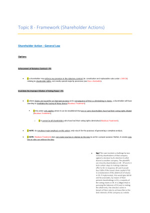 These H1 Corporations Notes are highly comprehensive and offer an exam-ready hypothetical framework, covering all substantive topics of the subject, including: Topic 2 - Incorporation and its Effects Topic 3 - Managing Companies Topic 4 - Framework of Duties Topic 5 - Duty to Act in Good Faith and Duty to Act for a Proper Purpose Topic 6 - Duty of Care Topic 7 - Conflicts and Profits Topic 8 - Shareholder Actions Topic 9 - Corporate Liability Topic 10 - Share Capital