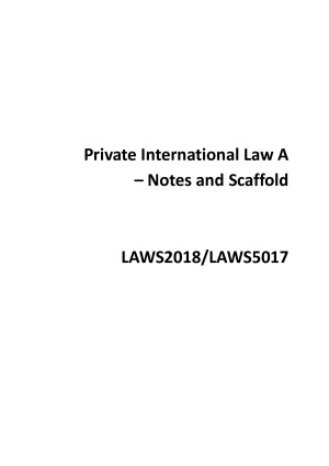 **The first part delivers in-depth coverage across all topics, presenting an easily navigable resource for both classes and exams. The content is thoughtfully highlighted, ensuring essential points are easily discernible, and the organization by topics enhances accessibility. These notes provide a streamlined path to achieving at least a Distinction in the Exam. **The second part is a CONCISE yet powerful Scaffold, hailed as the ULTIMATE ANSWER STRUCTURE for in-person exams. This scaffold served as the linchpin during my in-person final exam, enabling me to an impressive overall High Distinction (87%). **Topics covered: Topics 1) Introduction to private international law 2) Personal Jurisdiction 3) General Applicable Law Topics 4) Foreign Law 5) The Law Applicable to Torts 6) The Law Applicable to Contracts 7) Mandatory Rules & Forum Statutes 8) Enforcement at Common Law 9) Enforcement -- Statutory Registration of Foreign Judgements