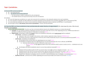 BENEFITS - These notes provide you with order and structure in how you approach problem questions. - Given the content in this course is SUPER heavy and the exam is SUPER intense, this HD Notes contains everything you need in the exam. - I promise you that these notes will the best set of notes that you will ever receive. I spent hundreds of hours perfecting these notes into these notes. LEGEND - Light Blue = Answer Structure - Pink = Case Names - Red / Bold = Anything Key to Note Topics covered: 1. Does the court have jurisdiction? (including interstate and NZ) 2. Will the court exercise its jurisdiction? 3. Anti-suit injunctions 4. Choice of law - methodology 5. Choice of law - contracts and equity 6. Choice of law - torts 7. Mandatory law 8. Substance vs. procedure 9. Pleading foreign law 10. Exclusionary doctrines 11. Recognition and enforcement of judgments