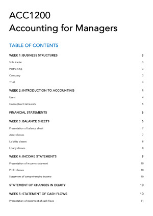 These notes cover all lectures from Week 1 to Week 11. They are set out in a readable format with each week as a heading and subtopics within the weeks clearly in blue. Important definitions are in red, and equations shown in orange. I received an 88 for this subject using these notes for my exam.