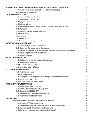 These are my completed set of exam scaffolds which I used for the final and mid sem exams for private international law. Even though these are scaffolds, they are extremely thorough with over 24,000 words. You will find all the relevant cases and legislation references you need to get a Distinction!! NB: These notes are ordered in the way you answer a problem question (not the way the course is tort choice of law is before personal jurisdiction) TOPICS INCLUDED ARE 1. Intro to private international law 2. Personal jurisdiction 3. Discretion not to exercise jurisdiction: foreign jurisdiction clause 4. Discretion not to exercise jurisdiction: clearly inappropriate forum 5. Anti-suit injunctions 6. General applicable law characterisation, substance, procedure 7. Proof of foreign law 8. Exclusionary doctrines 9. Choice of law in tort 10. Choice of law in contract 11. Mandatory forum statutes 12. Enforcement 13. Statutory registration of foreign judgments Goodluck!