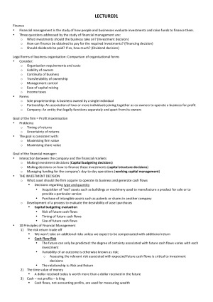 Summary from the BAFI1100 lectures. Includes exam prep questions solutions.