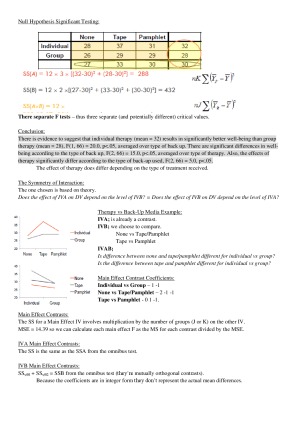 A comprehensive collation of all the PSYC3010 lecture content and tutorial material. These PSYC3010 study notes explain each statistical concept in extreme detail and have all the relevant SPSS Output and Syntax, as well as structured conclusions, provided. All the relevant equations are also included as well as explanations of the variables and constants included in them.