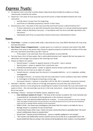 Equity and Trusts - Summaries of topics and case law