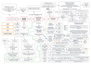 Ten (10) detailed flowcharts, created combining the semester's content including lectures, tutorials and readings. They were created for final exam purposes and helped achieve a comfortable 54/60. Due to the nature of tax law, almost all of the content should still be relevant. There are some topics ( superannuation) that were not covered in the final exam and therefore do not have a flowchart. References to separate notes are limited and only for niche areas ( Uniform Capital Allowance Rules). While I do not recommend relying fully on these flowcharts, they should be an excellent resource for exam revision and content understanding. Comparing their accuracy to the current semester's teaching and figuring out the abbreviations would be a great revision exercise. Topics covered: 1. Taxable Income Basics; 2. Residency; 3. Company Tax; 4. Income; 5. Medicare Levy & Surcharge; 6. Deductions; 7. Partnerships & Trusts; 8. CGT (A3); 9. FBT; 10. GST [Priced according to thorough accuracy check and proofreading; Taxable Income Basics flowchart as a free sample]