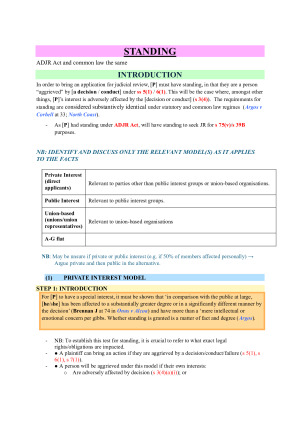 HD (83) ADMIN EXAM SCRIPT NOTES Detailed exam script used for the S1 2024 exam, allowing me to achieve a HD. Set out by all examinable topics. topics Included: 1. Introduction, Overview & role of Stat. interpretation 2. Jurisdiction 3. Standing 4. Reasons 5. Acting outside of power 6. Procedural Fairness 7. Jurisdictional Error 8. Remedies 9. Privative Clauses 10. Tribunals and Merits Review
