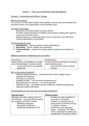 Topics TOPIC 1: THE ACCOUNTING ENVIRONMENT TOPIC 2: ACCOUNTING ELEMENTS, PRINCIPLES AND EQUATION TOPIC 3: THE ACCOUNTING RECORDING RPOCESS AND ANALYSIS OF BUSINESS TRANSACTIONS TOPIC 4: BUSINESS TRANSACTIONS IN JOURNALS AND LEDGERS TOPIC 5: ACCOUNTING FOR THE GOODS AND SERVICES TAX (GST) TOPIC 6: TRIAL BALANCE AND BALANCE DAY ADJUSTMENTS TOPIC 7: PREPARATION OF FINANCIAL STATEMENTS TOPIC 8: BUSINESS PLANNING – OPERATING AND FINANCIAL BUDGETS TOPIC 9: COST CONCEPTS FOR MANAGEMENT DECISIONS