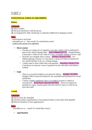 Tort Law general notes + exam checklists (HD Grade)