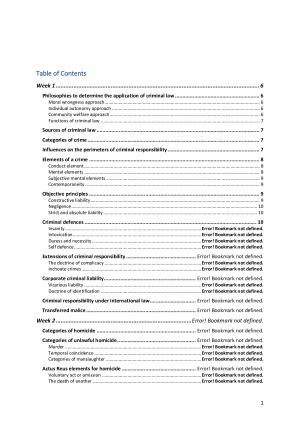 Criminal Law notes - 85% overall grade (top 5 students of my cohort)