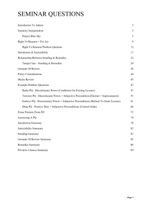 Detailed answers of seminar questions from weeks 3 - 11 including four exam style problem questions. Formatted in a word document with table of contents. Exam tips, checklist for answering problem questions and table summaries of each major topic at end of notes.