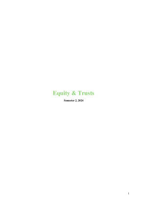 Detailed exam response structures with cases for the following topics: 1. Assignments 2. Charitable trusts 3. Resulting trusts 4. Constructive trusts 5. Fiduciaries (duties, breach, defences) 6. Administration of trusts (trustee appointment, duties, retirement, powers, remedies for improper administration) 7. Available claims (personal claim for equitable compensation, proprietary claim, tracing) + remedies (incl. third party liability