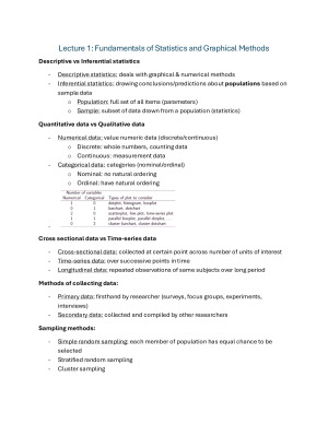 Complete notes on ECOM90009 with annotated lecture notes, REQUIRED READINGS, and highlighted important formula for workshop and exam. Topics include: - Fundamentals of Statistics and Graphical Methods - Summarise Data with Descriptive Statistics - Measures of Association and Random Variables - Discrete Random Variables and Binomial Distribution - Continuous Random Variables - Statistical Inference - Estimation (Hypothesis Testing) - Estimation Hypothesis Testing II - Estimation Hypothesis Testing Errors and CI - Regression (single linear) - Regression (multiple linear) - Regression assumptions and time series