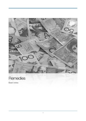 Detailed notes that cover the Melbourne University LAWS50036 course. These LAWS50036 notes have been kept short intentionally. They are succinct and to the point. Topics covered: - Contract: expectation damages, specific performance, other remedies, and rescission. - Tort: compensatory damages, injunctions, and other remedies. - Equitable wrongs: account of profits, injunctions, equitable compensation, and other remedies - Australian Consumer Law - Unjust enrichment