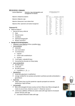 I easily got a H1 in this subject and with my notes you can too! My notes are easy to understand (with dot points and bolded sections that highlight important information). Covers all weeks (weeks 1-12) Topics covered: L1 - Anterior eye revision L2+L3+L4 – Cataracts L5 – Disorders of ocular ageing L6+L7 – Visual Field Assessment in Glaucoma L8 – Performing visual fields in the clinic L9 – Ocular Imaging & Photography L10+L11 – Glaucoma: Histopathology - Open Angle Glaucoma L12+L13 – Open Angle Glaucoma (OAG) + Prostaglandin Analogues L14+L15 – Secondary glaucoma + Beta-blockers L16+L17 – Angle Closure Glaucoma + Carbonic Anhydrase Inhibitors and Pilocarpine L18+L19 – Glaucoma Management L20 – Systemic workup 1 – Bloods and Lymph nodes L21 – Congenital developmental anomalies of the optic nerve L22 – Other congenital anomalies of the optic nerve L23 – Inherited and acquired (toxic and nutritional) optic neuropathies L24 – Acquired (compressive and ischaemic) optic neuropathies L25 – Acquired (inflammatory and demyelinating) optic neuropathies L26 – Systemic workup 2 L27 – Autoimmune cross-reactivity affecting the eye (AIED): Thyroid Eye Disease L28 – Para‐neoplastic syndromes (cross reactivity) – Cancer-associated retinopathy (CAR) & Melanoma-associated retinopathy (MAR) Paraneoplastic Optic Neuropathy (PON) L29+L30 – Diseases of the Vasculature - Occlusions L31 – Diseases of the Vasculature - Hypertension L32 – Diseases of the Vitreous L33 – Peripheral retinal degenerations & Myopic macular degeneration L34 + L35 – Diseases of the Vasculature - Diabetic Retinopathy L36 – Revising vascular disease L37 – The Vitreoretinal Interface and Macular Disease L38 – Retinal holes, tears and detachment