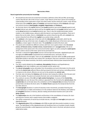 Well detailed comprehensive notes, guaranteed to score. Able to cope with this notes without attending lectures Topics covered: Neural organisation-presumed prior knowledge Cellular basis of neural function Neural communication and plasticity Ways to study brain function Development of the nervous system Touch Vision 1-retina Vision 2- higher cortical processing of visual information Hearing Gustation and olfaction- taste and smell The lower motor neuron The upper motor neurons Modulation of movement: cerebellum and basal ganglia Optogenetics Autonomic nervous system 1 Autonomic Nervous system 2 Sex, steroids and the nervous system Neural control of digestions Neural sensory- motor neurons Learning and Memory Pain Emotions- Fear and anxiety Reward and motivation Meta-plasticity: developmental disorders Disorders of the Nervous System Prefrontal cortex- social and other cognitions Consciousness