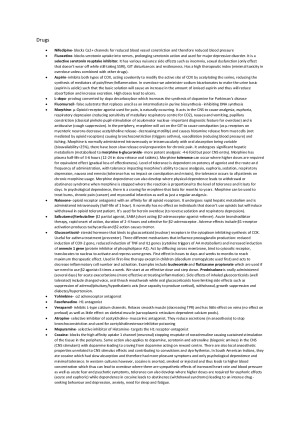 Comprehensive notes that cover all the drugs in this subject Topics covered - Introduction -Workshop -Tutorial -Drug Target -Drug Interaction - Autonomic Nervous System -Adrenergic, Nicotinic -Bioactive Lipids -How drugs act, Pharmacokinetics -Poisons -Cardiovascular System -Asthma -Immunopharmacology -Drug Discovery -Oral Contraceptives -Nootropics (smart drugs) -Antidepressants -Pain -Pharmacogenomics -Obesity -Drugs that induce sleep -Drugs of dependence -Social aspects of drug use-supervised injection -Toxicology - Selectivity of toxicity
