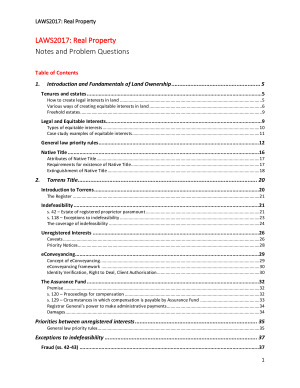 Distinction study notes for LAWS2017 - Real Property Covering all topics from the prescribed semester syllabus + supplementary reading in various topics. These notes are designed to be a study tool to assist in learning and understanding of the material (and not to be relied upon - noting legislation, case law, and commentary may have evolved since production). As always, your best resources remain the prescribed materials, lectures, tutorials, and your tutors. Any typographical errors etc are my own.