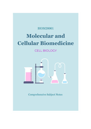 Comprehensive MCB notes for CELL BIOLOGY! - Includes contents and page numbers for easy navigation Topics included: Intracellular Organisation - Protein translocation into the ER - Mitochondrial transport - Nuclear transport - Vesicular transport - Transport between ER and golgi - Golgi to cell exterior - Endocytosis - Cell Signalling - Principles of cell signalling - GPCRs - Enzyme coupled receptors Cytoskeleton, Cell Cycle, ECM - Function and dynamics of the cell cytoskeleton - Actins and myosins - Microtubules and MMPs - Intermediate filaments - Cell polarity and the coordination of the cytoskeleton - S phase - Mitosis - Cytokinesis - Control of cell division and cell growth - Cells, issues and cell junctions - Cadherins and adherens junctions - Adherens junctions - Extracellular matrix of animals - Cell matrix junctions Cancer - Microevolutionary process - Cancer-critical genes