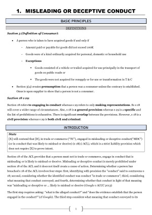 Get ready for your exams with these organised Competition and Consumer Law notes. Designed for busy students, this resource breaks down complex topics into digestible sections—covering everything from Misleading or Deceptive Conduct to Competition Law. With a clear table of contents, easy-to-navigate formatting, and integrated skeleton guides, these notes are perfect for in-depth understanding and quick revision before exams. Sharpen your legal knowledge and build your confidence for tests and assignments with this indispensable study guide. Why These Notes Stand Out: - Organized by Lecture/Topic: Each section is set out to mirror your course structure, making it easy to locate and revise key concepts. - Up-to-date Content: Stay ahead with notes reflecting the latest legislative changes, ensuring your knowledge is current and comprehensive. - All-Inclusive Coverage: The complete course notes include relevant legislation and case law, accounting for an extensive word count and deep insights into the subject. - Exam-Focused Summaries: For efficient revision, the summary notes emphasize examinable topics in a handy ‘template form’—a proven strategy that maximized exam time and can help you potentially secure a HD. - Clear, Concise Formatting: Easy navigation and well-structured content allow you to quickly grasp complex legal principles, from Misleading or Deceptive Conduct to Competition Law. Table of Contents Overview: Misleading or Deceptive Conduct False or Misleading Representations Unfair Sales Techniques Consumer Guarantees Unsolicited Consumer Agreements Statutory Unconscionable Conduct Unfair Contract Terms Competition Law Whether preparing for exams or enhancing your understanding of future coursework, these notes offer a comprehensive and reliable study tool. Get ready to excel in your Competition and Consumer Law course with a resource that simplifies your revision process and bolsters your confidence with up-to-date and thorough content.