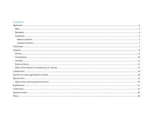 These notes provide a comprehensive and structured breakdown of Contract Law, outlining all relevant case law and legislation, with succinct topic scaffolds that outline key principles and will prove invaluable in timed exam conditions. Topics included are the following" - Terms -Construction -Exclusion Clauses -Privity -Discharge -Tripartite Classification of Terms -Termination& Repudiation
