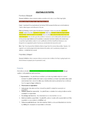 These notes will help you excel in your studies. They provide a comprehensive step-by-step guide on how to answer a problem question both in an exam or an assignment. The topics covered are: 1. Equitable Estoppel 2. Unconscionable Conduct 3. Fiduciary Obligations 4. Constructive Trust 5. Remedies