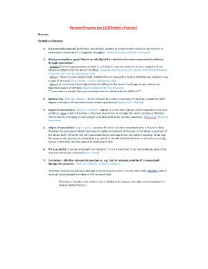 Concise exam notes to help you excel in this course. Includes everything you need from cases and legislation. The topics include: - Personal Property Law (1) Annexation and Fixtures (Chattels v Fixtures) - Personal Property Law (2) Finders Keepers Rule - Personal Property Securities (PPS) (Grantor, Debtor, IMPSI) - Competition and Consumer Law (1) (Unfair Terms, consumer guarantees) - Competition and Consumer Law (2) (Unconscionable Conduct, misrepresentation of ads)