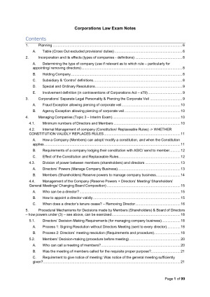 These notes are handcrafted to be applicable to any potential issue arising in a Corporations Law exam, structured to be copy/pasted (or written verbatim) for the Issue and Rule followed by step-by-step questions to answer in analysis with analogies for that H1 critical analysis. These are the most straightforward set of notes to ensure you do well in your exam.