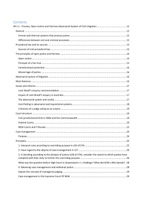 Comprehensive notes for Civil and Criminal Procedure. Includes all course content covered. These notes were also used in the exam as they were easy to follow for problem questions. Topics covered: - Intro to Criminal Procedure - Police Powers and Discretion - Bail and Appeals - Pre-Trial Processes, The Decision to Prosecute, Mandatory Disclosures - Sentencing and Punishment - Intro to Civil Procedure - Matters Preceding Litigation, Commencing Proceedings - Pleadings and Particulars, Gathering Evidence - Opposing Disclosure, Objecting to Production/Access - Trial or No Trial