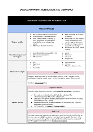 DISTINCTION LAW5432: WORKPLACE INVESTIGATIONS & MISCONDUCT NOTES