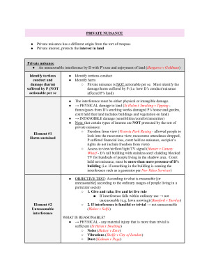 EXAM NOTES Covers all topics of LAW5003: Trespass to person - Battery, Assault, False Imprisonment Defences to Trespass to Person Remedies to Trespass to Person Trespass to Land + Defences and Remedies Private Nuisance + Defences + Remedies Tort of Negligence (DOC, BOC, Special duties, causation + remoteness, RF Negligence Defences + Remedies Vicarious Liability