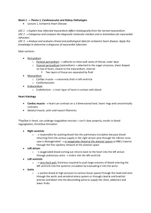 These notes are your ticket to not only a HD, but a high HD! I have completed a selection of comprehensive notes in the past, all of which have helped me achieve high HDs - and grades within the top 10% of the cohort! - one of my prior pathology notes being 'HD HUP3011 Notes' (semester 1, 2024) These notes are extremely comprehensive! They encompass information from both the lectures and textbook, and provide extensive explanations of confusing or detail heavy topics so that you can easily understand the material. The notes are organised by week, with titles, learning outcomes, and topics all outlined for you! This is a really useful way to help guide you to know what you need to understand from the lecture material and why. Because of this, you will start to establish links between the topics and learning outcomes - instead of mindlessly cramming and praying you remember everything. The notes include the examined class material from weeks 1 to 11, and encompass the following topics: Weeks 1 + 2: Cardiovascular and Kidney pathologies Weeks 3, 4 + 5: Neuropathology Week 6 + 7: Haematopathologies Week 8: Skin Cancer Week 9 + 10: Gastrointestinal Pathology Week 11: Female and Male Pathologies