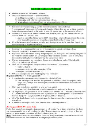 Complete Criminal Law A Exam Notes Topics included -Introduction to Criminal Law in WA -Trial procedure and the classification of offences -Criminal intention -Homicide offences -Causation -Duty provisions -Non-fatal offences against the person -Other non-fatal offence -Sexual offences -Property offences -Inchoate offences -Parties to offences