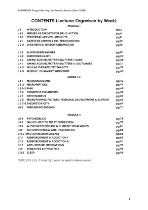 All examinable content from PHRM30002 Drugs Affecting the Nervous System at the University of Melbourne. Concise yet informative notes & digitally drawn diagrams that cover all the content taught in lectures, edited to include additional insights from workshops, quizzes, MST feedback and subject forum (Ed Discussion) pages. I created and used theses notes exclusively in 2024 to achieve a score of 90/100.