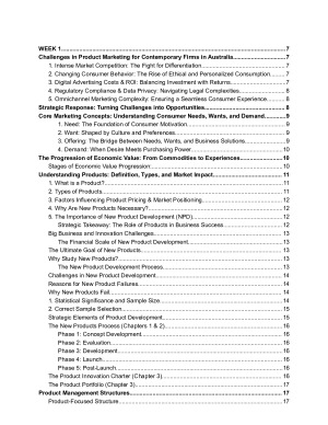 This document offers an in-depth and structured compilation of notes for the New Product Development subject, covering Weeks 1 to 9 in detail. Designed for students and professionals alike, it systematically explores every critical stage of the NPD process—from identifying market opportunities and concept generation to testing, launch management, and post-launch evaluation. Key highlights include: Contemporary product marketing challenges in the Australian context Strategic frameworks like the Product Innovation Charter, ATAR model, and Balanced Scorecard Practical tools for idea screening, sales forecasting, and customer-centric design Deep dives into product and service development, testing, and launch execution Analytical techniques such as ERRC, morphological matrices, gap maps, and more Real-world examples and strategic takeaways for each NPD phase