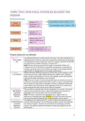 - Introduction to Criminal Law - Non-fatal offences against the person - Common Law Assault - Homicide - Manslaughter - Self-defence - Sexual Offences - Attempts - Criminal Procedure