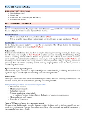 Topics Covered: SOUTH AUSTRALIA PRELIMINARIES/LIMITS ON JR GROUNDS OF JUDICIAL REVIEW CONSEQUENCES REMEDIES COMMONWEALTH PRELIMINARIES/LIMITS ON JR GROUNDS OF JUDICIAL REVIEW CONSEQUENCES REMEDIES