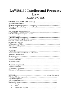 LAWS5150 Intellectual Property Law Exam Notes Clear & Concise