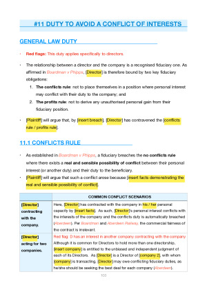 These notes cover every examinable topic for the subject ‘Corporations Law’ and will assist you with both the assignment and final exam. They are designed to enable quick thinking in the exam to ensure efficient time use by including: - Introduction, explanatory and conclusion sentences. - Full scripts for each topic with ‘fill in the blank’ styles sentences which can easily be inserted into your exam answers in a quick and efficient manner. - Cases and concepts are summarised in dot points to transfer into exam answers. Notes are extremely comprehensive and detailed, yet also very easy to navigate utilising a step-by-step technique to answering exam questions. Content of notes will also assist you in generating real-time responses to class discussions in tutorials which are assessable. TOPICS COVERED INCLUDE - INTRODUCTION - FORMATION AND CLASSIFICATION OF COMPANIES - INCORPORATION AND ITS EFFECTS - SHARE CAPITAL, DEBT CAPITAL AND DIVIDENDS - CONSTITUTION AND REPLACEABLE RULES - COMPANY ORGANS AND THE DIVISION OF POWER - BOARD OF DIRECTORS AND GENERAL MEETING - OVERVIEW OF DIRECTOR’S DUTIES - DUTY OF CARE, SKILL AND DILIGENCE - DUTY TO ACT IN GF IN THE BEST INTERESTS OF THE COMPANY AND FOR PROPER PURPOSE - DUTY TO AVOID A CONFLICT OF INTERESTS - RATIFICATION AND RELIEF FROM LIABILITY - STATUTORY DERIVATIVE ACTIONS - SHAREHOLDERS’ PERSONAL ACTION - OPPRESSION, WINDING UP & STATUTORY INJUNCTION