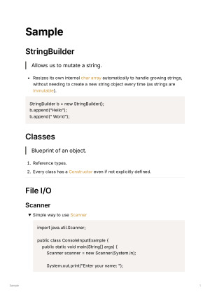Struggling to prepare for your INFO1113 exam? Get my concise, easy-to-understand exam notes that helped me get a *High Distinction (HD)* through exam season with confidence! What’s in my notes? 💡 StringBuilder, Classes, File I/O (Scanner, Reading/Writing), Binary I/O, Garbage Collector 💡 Collections (Lists, ArrayList, LinkedList, HashMap, Set) 💡 Checked/Unchecked operations, Iterators, Packages, Java Archives 💡 Generics, Wildcards, and Lambda Functions 💡 Inheritance, Polymorphism, Abstract Classes, Interfaces 💡 Examples for recursion, memoization, exceptions (custom exceptions), and enums 💡 JUnit for testing and assertions Why choose my notes? - Not just regular notes where text is copied and pasted. It consists of definitions, personal tips, guidance, and examples for implementing! - Perfect for exam prep or quick revision - Concise yet also comprehensive - Easy to follow with practical example code included - Trusted by students who want to learn smarter, not harder! Get your copy today and crush your INFO1113 exams with me!