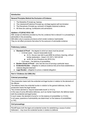 Evidence law covers the rules on admissibility and relevance, burdens and standards of proof, examination of witnesses, hearsay and its exceptions, opinion and expert evidence, character and credibility, privilege and confidentiality, tendency and coincidence evidence, and the exclusion of unfairly or unlawfully obtained evidence.