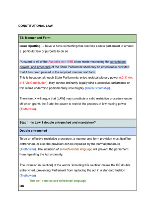 Constitutional law covers the separation of powers, responsible government, federalism and division of powers, the scope of Commonwealth legislative powers, limits on State powers, implied rights and freedoms, express constitutional guarantees, judicial review and the role of the High Court in constitutional interpretation.