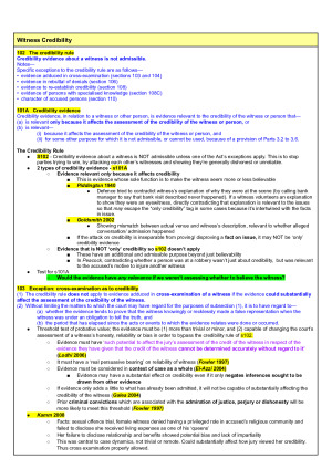 Complete Set of CPEP Notes used for Exam All topics covered including: - Prosecutorial Duties - Relevance and Reliability - Mandatory and Discretionary Exclusions - Right to Silence - Burdens and Standards of Proof - Witness Competence and Compellability - Witness Questioning - Witness Credibility - Hearsay - Tendency, Coincidence and Character Evidence - Opinion Evidence - Identification Evidence - Judicial Warnings