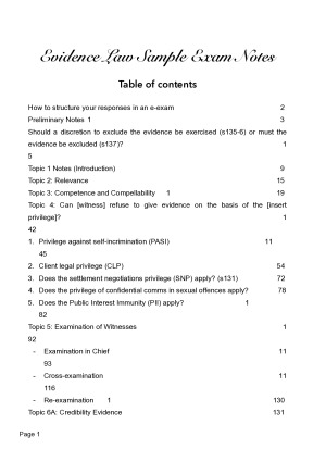 These complete notes which contain all legislation and relevant cases were used in my exam and allowed me to score a HD (87). I scored 35 1/2 out of 40 for my written submission on tendency & coincidence and for my oral submission on res gestae. Thus, I scored 51/60 (85%) on the exam. These notes are formatted through headings and sub headings that make the notes very easy to follow and utilise in an exam situation. These headings/sub-headings are framed as yes/no questions and include model responses with colour coded fill in the blanks depending on whether the answer to the question is yes or no (see sample notes for demonstration). The concepts in evidence law are very abstract and require a strong understanding of their application to specific factual scenarios. Therefore I utilise sample responses for effective case analogising and ensure varying factual scenarios were addressed. Whilst this method of notes construction was incredibly arduous for myself, it provides for a clear understanding of how the legislation applies to a problem question and ensures a complete answer is written. With these complete methodically crafted notes, which allowed me to compartmentalise my deep understanding into exam-ready responses, you will be able to succeed in any evidence law exam (especially a Fiona Hum one) and save countless hours trying to understand content and make notes for this exam. These comprehensive notes will serve as integral to your learning and your ability to excel in Evidence Law.