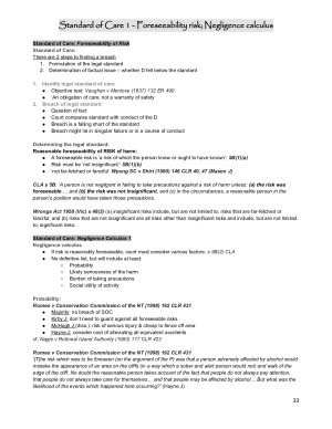 Torts Notes: Table of Contents - Trespass to Person: Assault, Battery, False Imprisonment, Wilful Injury & Defences. - Trespass to Property: Land & Goods (Trespass, Conversion, Detinue). - Negligence - Duty of Care: General Principles, Pure Mental Harm & Pure Economic Loss. - Negligence - Breach of Duty: Standard of Care & Causation Principles. - Negligence - Special Duty Areas & Liabilities: Public Authorities, Vicarious Liability & Non-Delegable Duties. - Defences to Torts: Contributory Negligence, Voluntary Assumption of Risk & Intoxication. This set of notes offers a detailed exploration of key torts in Australian law, starting with intentional torts against persons and property, including their specific elements and available defences. It then transitions to the tort of negligence, comprehensively covering the elements of duty of care (including specific considerations for pure mental harm and pure economic loss), breach of duty (applying the reasonable person test and statutory provisions), and causation. The notes also address unique aspects of liability, such as those involving public authorities, vicarious liability, and non-delegable duties, concluding with an analysis of major defences like contributory negligence, voluntary assumption of risk, and the impact of intoxication.