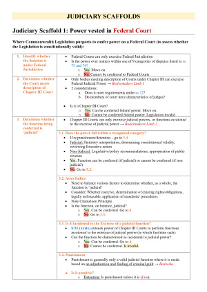 Detailed Problem Question Scaffolds covering all final exam content. Scaffolds include: - Action by governor-general - Action by other Executives - Delegated Legisaltion - Detention/Punishment - Judicial powers of Federal Court - Judicial powers of members of Court (persona designata) - Judicial powers of State Courts