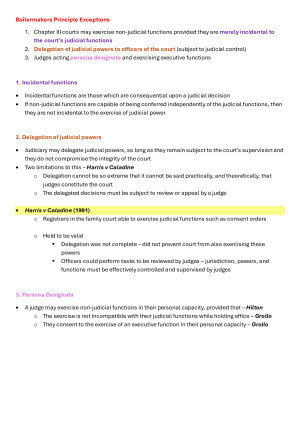 Comprehensive Public Law Exam Notes - Case tables outlining issue, facts, ruling, and principles - Essay structures for pertinent topics - Problem question structures for Kable, Boilermakers and more - Comprehensive notes on examinable topics including right to vote, Kable, Boilermakers, Executive including prerogative and nationhood), and Integrity arm - Concise breakdown of detailed concepts - Easy to navigate - 85%+ Exam mark